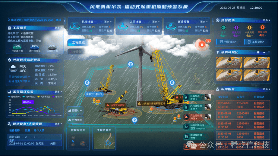 以工程小場景為主體,進(jìn)行場景化(加入工程機(jī)械壽命、效率,工程人員操作行為等)安全監(jiān)測,分析以及管理擺脫先前單一機(jī)械設(shè)備監(jiān)測維度,聚焦風(fēng)電機(jī)組吊裝工程場景的綜合性管理。