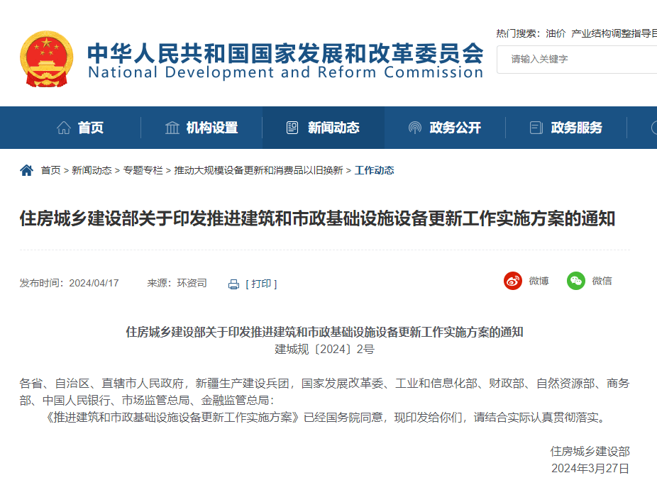 政策:《住房城鄉(xiāng)建設(shè)部關(guān)于印發(fā)推進(jìn)建筑和市政基礎(chǔ)設(shè)施設(shè)備更新工作實(shí)施方案的通知》-國(guó)家發(fā)展和改革委員會(huì)?