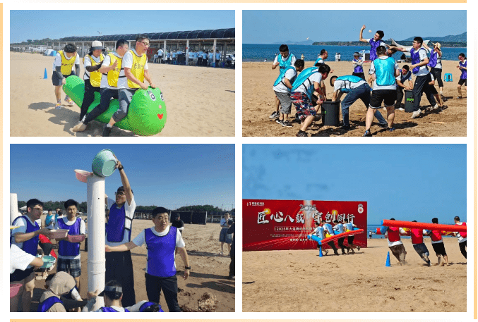 在專業(yè)教練的帶領下,大家迅速組隊,選定隊長,喊響口號,斗志昂揚地投入一系列趣味與挑戰(zhàn)并存的拓展項目中:《毛毛蟲競賽》的默契配合、《龜兔賽跑》的策略比拼、《眾星捧月》的齊心協(xié)力、《蒙眼傳水》的信任考驗、《滴水不漏》的精細協(xié)作、《水球大戰(zhàn)》的酣暢淋漓……每一個項目都是對團隊溝通、協(xié)作、執(zhí)行力的實戰(zhàn)演練。歡笑聲、吶喊聲、加油聲此起彼伏,回蕩在海天之間。汗水與海風交織,智慧與勇氣碰撞,團隊的情誼在合作與競爭中迅速升溫,凝聚力得到前所未有的升華。