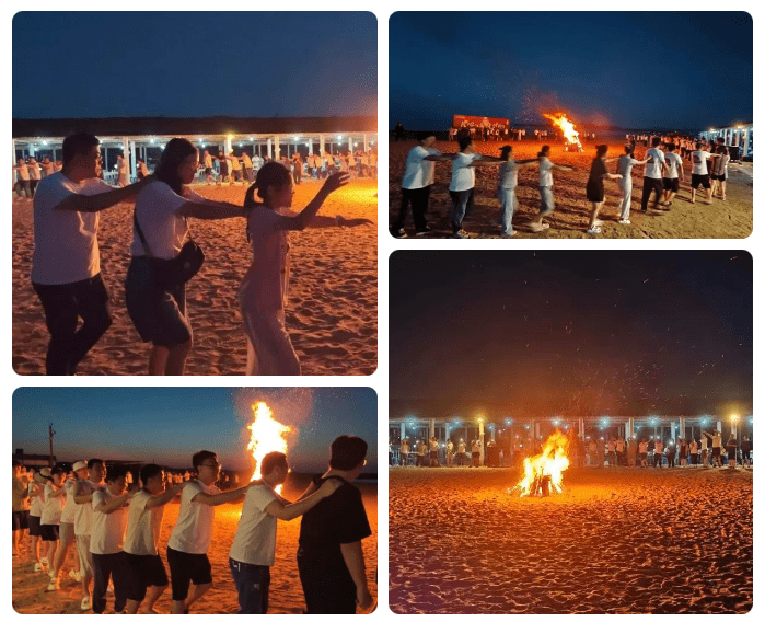 拓展的激情還未褪去,海邊燒烤晚宴的香氣已彌漫開來。大家圍坐在一起,享受美食,暢聊工作與生活,其樂融融。