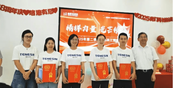 二季度優(yōu)秀員工頒獎環(huán)節(jié),四位獲獎者依次登臺。他們中,有攻克技術難題的研發(fā)部骨干,有屢創(chuàng)佳績的總經(jīng)辦先鋒,也有默默奉獻的生產(chǎn)部能手。這不僅是個人的榮譽,同時也致敬每一位用行動定義卓越的騰屹信之星!