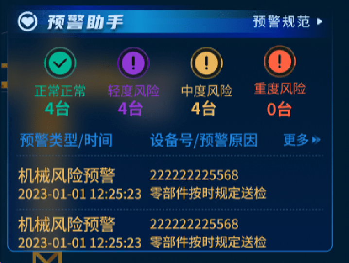 預(yù)警助手包含風(fēng)險狀態(tài)評估,風(fēng)險狀態(tài)預(yù)警,同時提供預(yù)警規(guī)范查詢,做到有依有據(jù)。