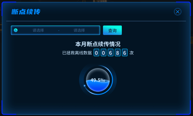 展示拯救離線數(shù)據(jù)次數(shù)以及數(shù)據(jù)占比,直觀體現(xiàn)斷點續(xù)傳功能的效益。