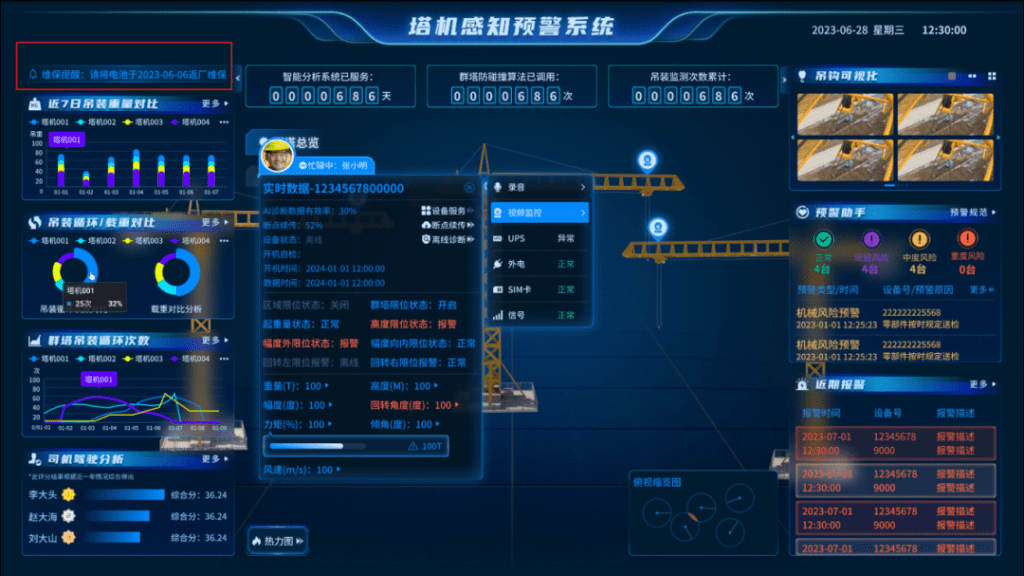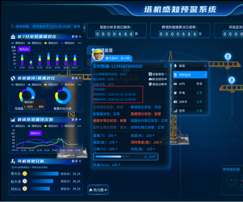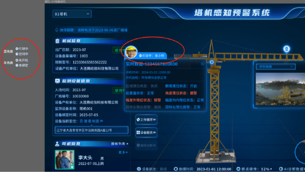 系統(tǒng)直觀體現(xiàn)當(dāng)前塔機忙碌狀態(tài),?輔助統(tǒng)籌管理。