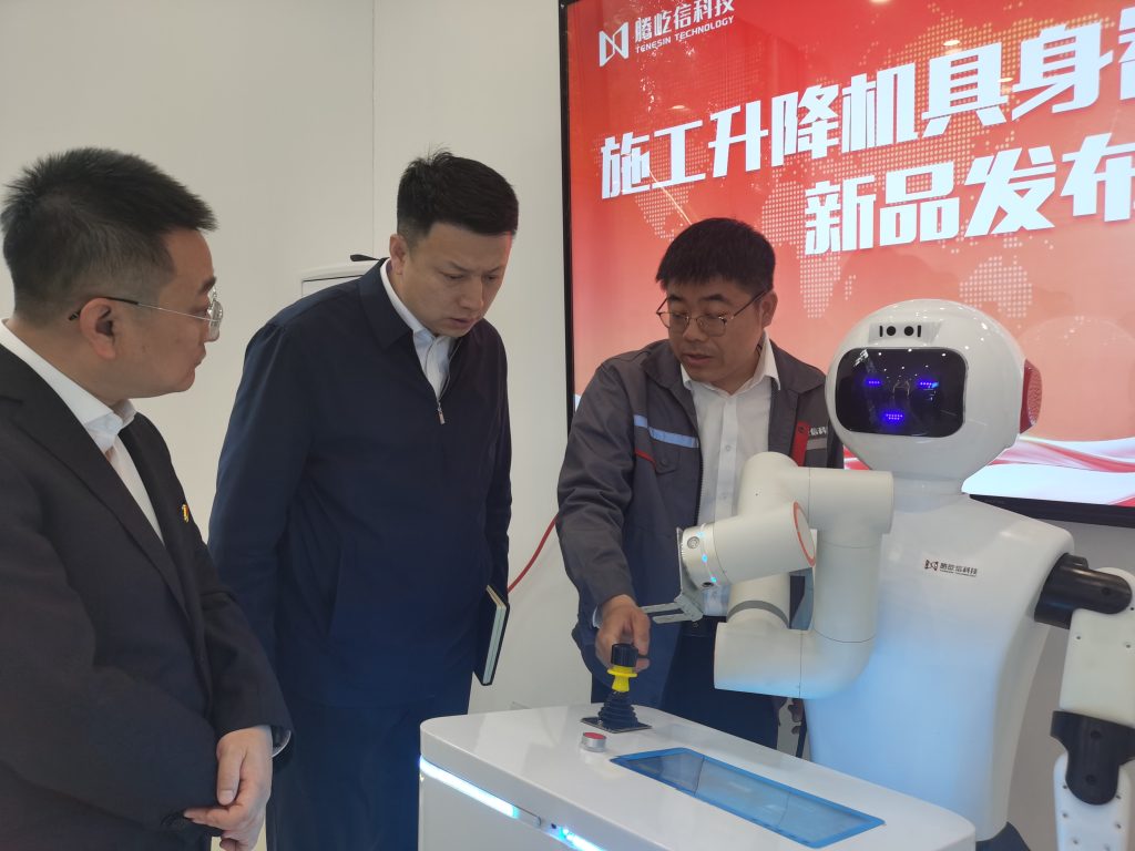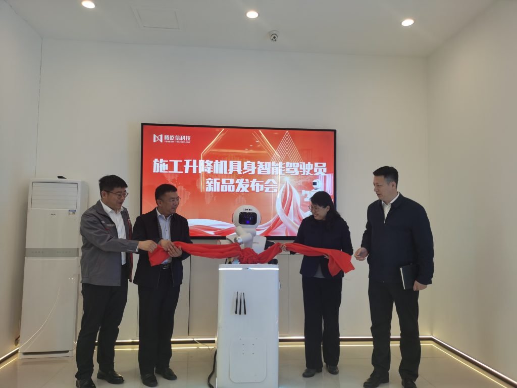 市工信局副局長鄭曉杰、市科技局副局長蔣行海、市住建中心主任王文暉與騰屹信董事長王海飛共同為施工升降機(jī)具身智能駕駛員產(chǎn)品揭牌。正式開啟“紅色引擎”驅(qū)動企業(yè)高質(zhì)量發(fā)展的新篇章。