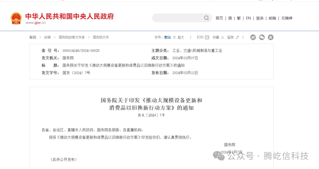 《推動大規(guī)模設備更新和消費品以舊換新行動方案》
