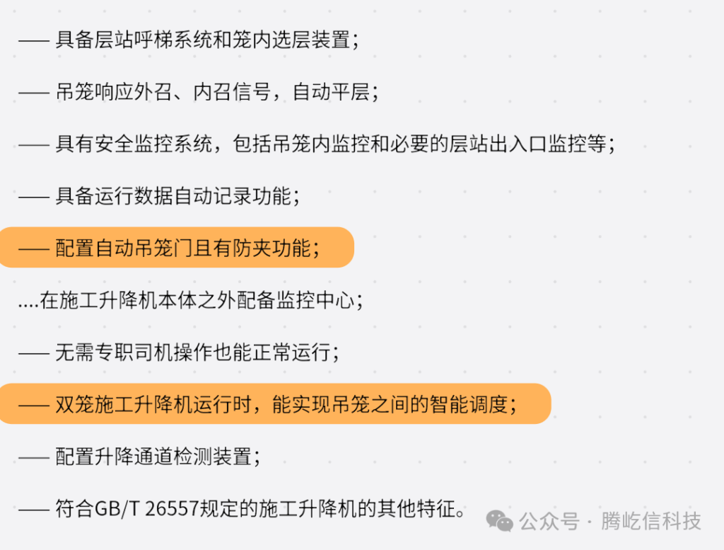 2024年,騰屹信科技將帶領自己的研發(fā)和生產團隊,結合政策要求和市場客戶需求,利用數字化發(fā)展經驗創(chuàng)新思路和應用,完成施工升降機的升級改造方案!