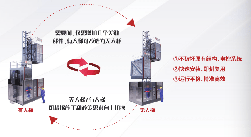 2.不改變原有設(shè)備結(jié)構(gòu)、動(dòng)力系統(tǒng)及安全設(shè)施的前提下,通過科學(xué)加裝傳感器、視覺AI設(shè)備、人工智能主從機(jī)及自動(dòng)化執(zhí)行組件,實(shí)現(xiàn)最新款智能無人駕駛升降機(jī)的全部功能。