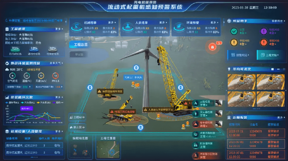 不僅如此,該產(chǎn)品在實(shí)際應(yīng)用中實(shí)現(xiàn)了對人員、進(jìn)度、環(huán)境的全方位精準(zhǔn)管控。一方面,對現(xiàn)場人員的實(shí)時(shí)定位、操作規(guī)范監(jiān)測,確保每一位施工人員都處于安全且高效的工作狀態(tài);另一方面,緊密跟蹤施工進(jìn)度,及時(shí)發(fā)現(xiàn)潛在延誤因素并預(yù)警,保障項(xiàng)目按計(jì)劃穩(wěn)步推進(jìn)。同時(shí),對吊裝現(xiàn)場復(fù)雜多變的自然環(huán)境,如風(fēng)力、溫度、濕度等參數(shù)進(jìn)行持續(xù)監(jiān)測,動(dòng)態(tài)調(diào)整施工策略。