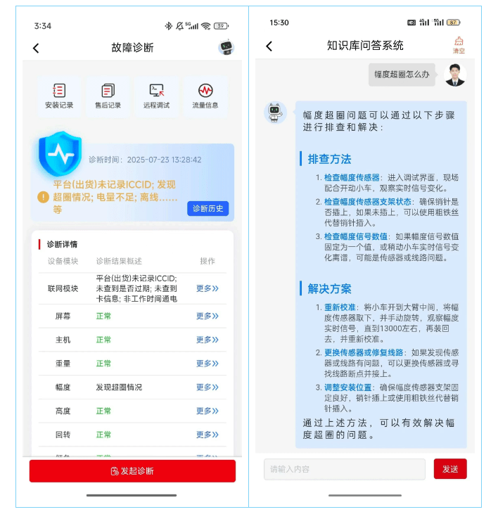 AI知識庫:平臺內(nèi)置自研知識庫,支持AI對話功能。當(dāng)用戶遇到設(shè)備異常時(shí),可通過提問快速獲取解決方案。
